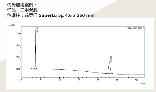 SuperLu SCX色譜柱為陽離子化合物基質提供超佳的分離度和尖銳峰形。