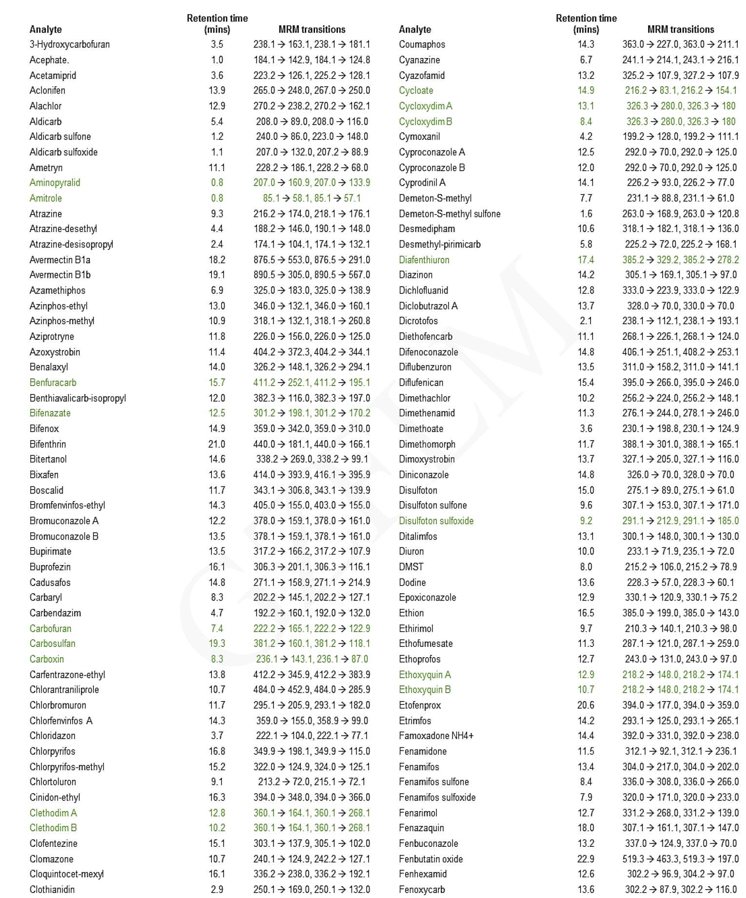 樣品:樣品制備采用 QuEChERs 方法,用黃瓜基質加標 0.01mg/kg 進行方法驗證。
