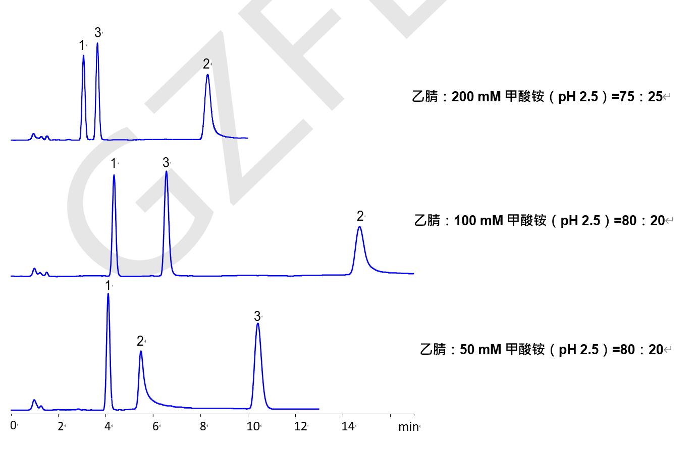 注:因此樣品對色譜柱條件較敏感,務(wù)必嚴(yán)格按固定的流動(dòng)相條件平衡后操作。