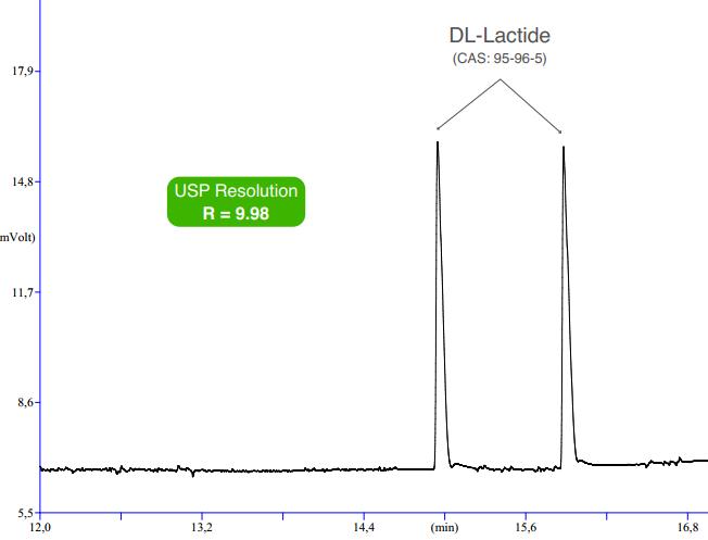 四,丙交酯的手性對(duì)映體氣相手性分析(GC+FID) 色譜柱:FBX-DEX DET Beta-0.25mm,0.25um,15m (貨號(hào):BDET-025-025-15)